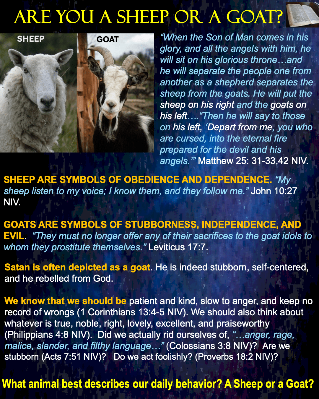 “My sheep listen to my voice; I know them, and they follow me.” John 10:27 NIV. Share this: Click to share on X (Opens in new window) X Click to share on Facebook (Opens in new window) Facebook Like Loading... Related Leave a comment Cancel reply Δ