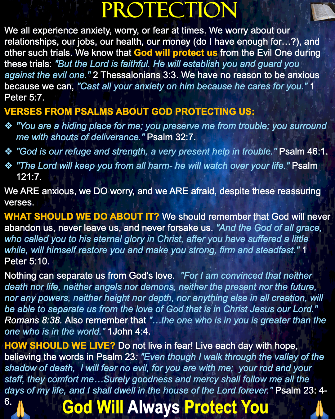 “The Lord will keep you from all harm- he will watch over your life.” Share this: Click to share on X (Opens in new window) X Click to share on Facebook (Opens in new window) Facebook Like Loading... Related Leave a comment Cancel reply Δ