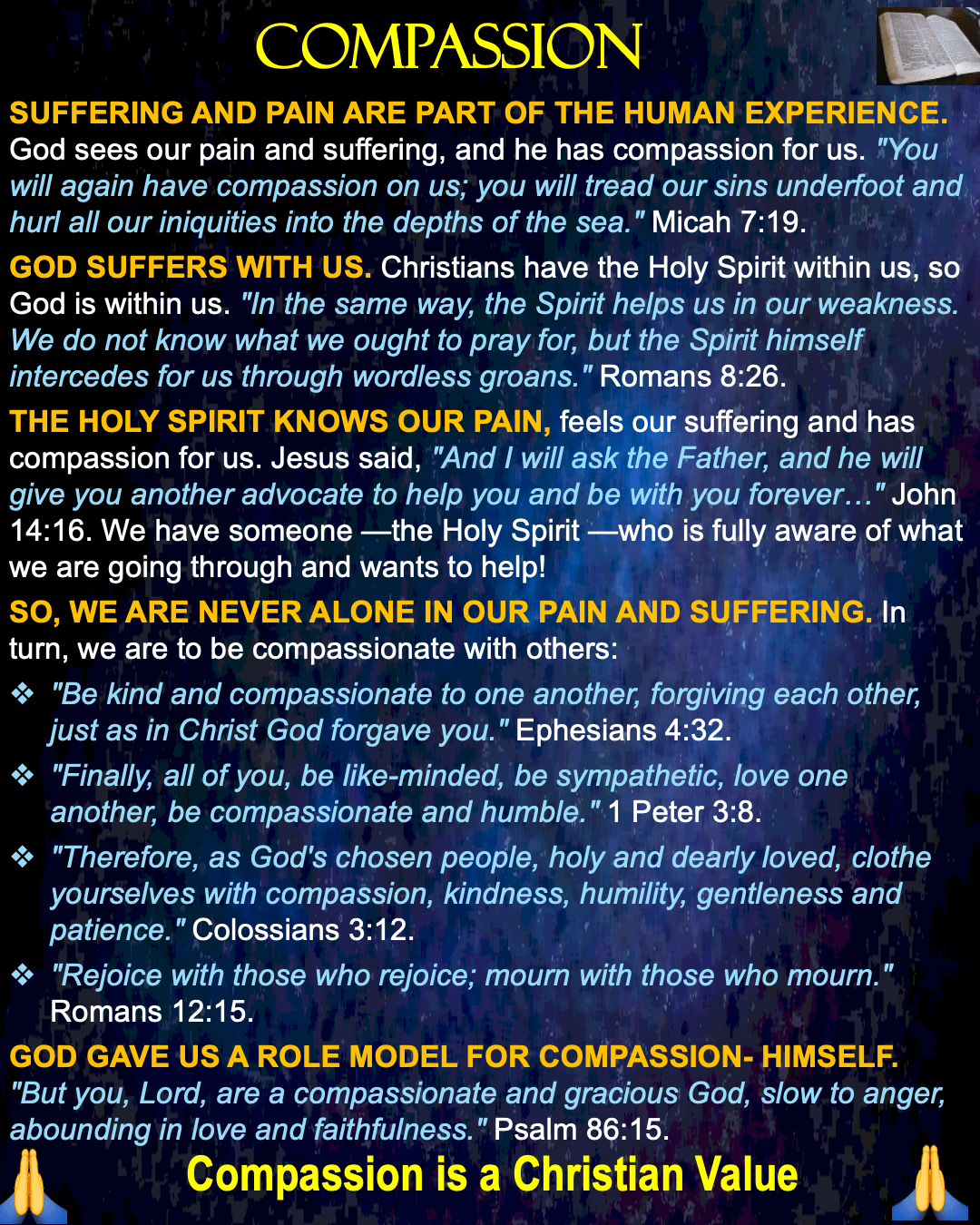 God is our role model for compassion… Share this: Click to share on X (Opens in new window) X Click to share on Facebook (Opens in new window) Facebook Like Loading... Related Leave a comment Cancel reply Δ