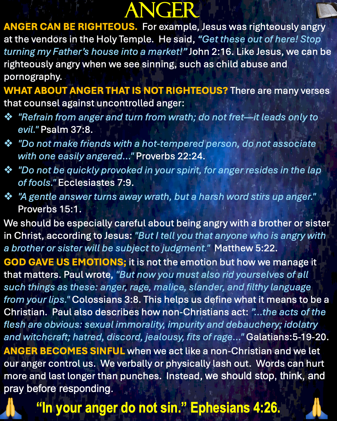 “In your anger, do not sin.” Share this: Click to share on X (Opens in new window) X Click to share on Facebook (Opens in new window) Facebook Like Loading... Related Leave a comment Cancel reply Δ
